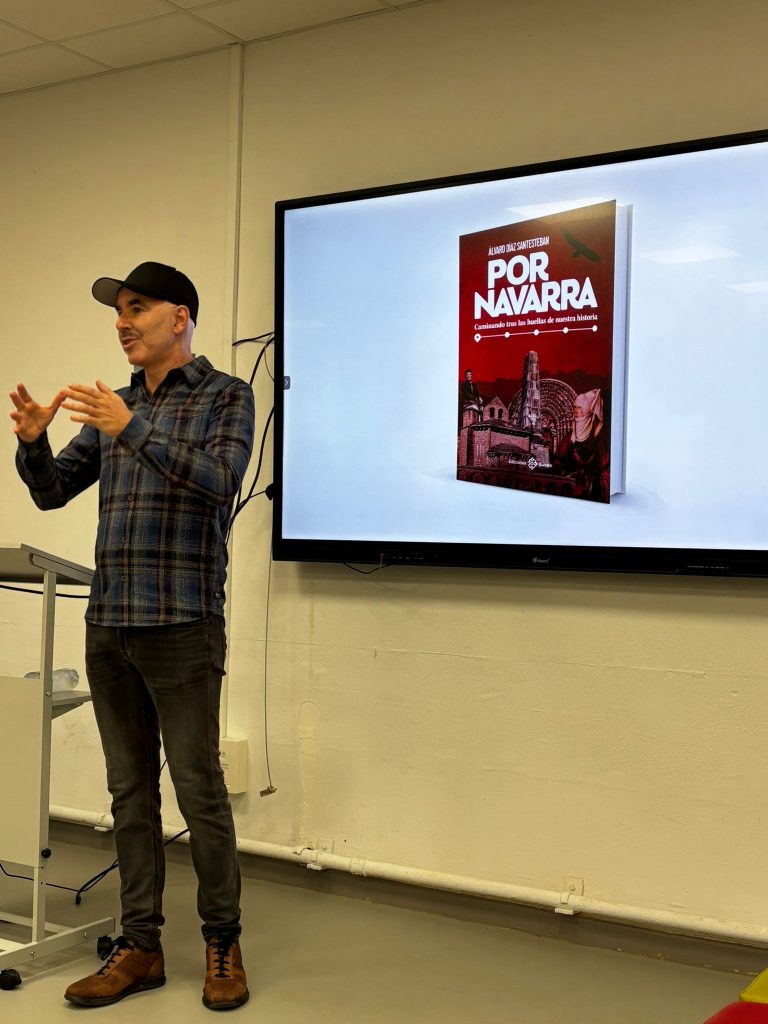 El alumnado de Geografía e Historia de Navarra ha asistido a la charla-presentación del libro Por Navarra. Caminando por las huellas de nuestra historia de Álvaro Díaz Santesteban, editado por Eunate Ediciones.