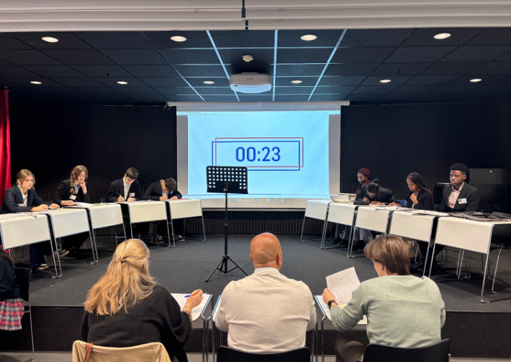The excitement among our students was palpable, and we proudly fielded two teams: Fiji — Anne Chen, Xinjie Chocarro, Anais Martín, Javier Ventura, and Markel Juango — and Canada — Asunción Bindang, Emma Twene, Mirabell Augustt, and Oscar Odigie. Two teacher looked after the teams this year: Maria Prieto and Agnes Felczak. Both teams grew stronger and more confident with each debate, demonstrating skill, determination, and teamwork every step of the way.